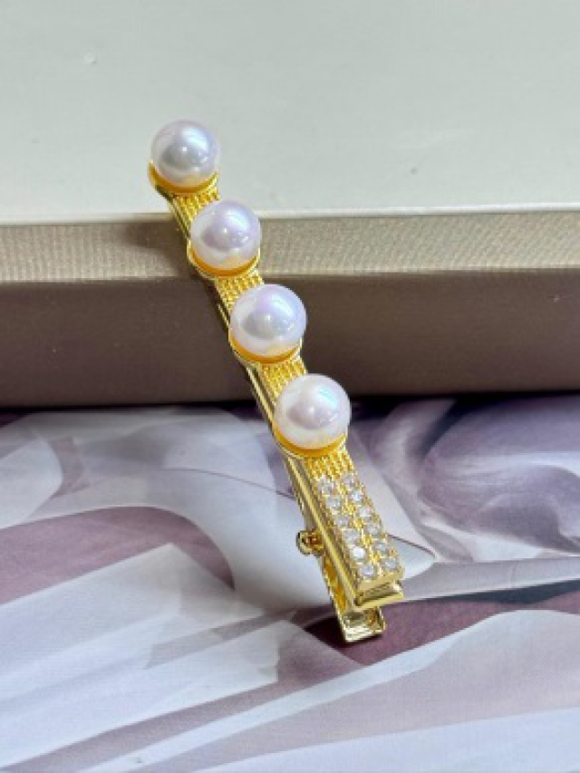 珍珠直播 - DSXZ-D-045-379 淡水4珠一字髮夾