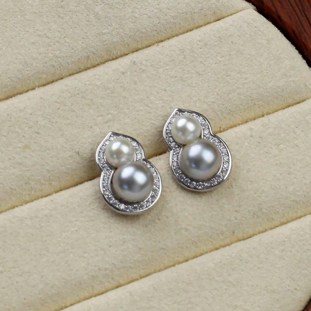 珍珠直播 - DSES-HS-030-799 AKOYA+真多麻雙珠葫蘆耳環