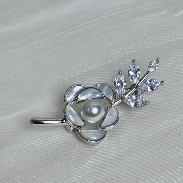 珍珠直播-B-040-499 海水真多麻珍珠貝母機葉胸針