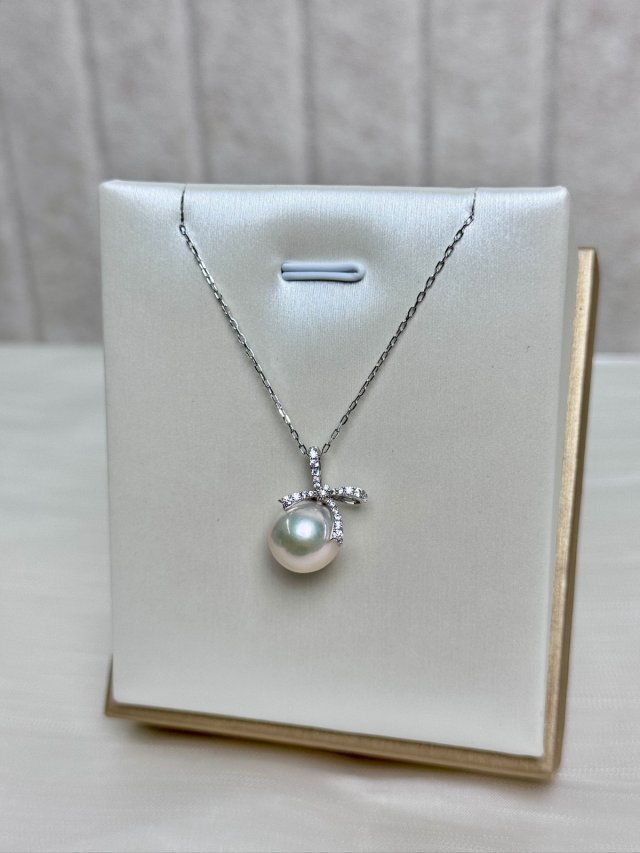 珍珠直播-B-028-499 大白珍珠蝴蝶結吊墜 (送銀鏈)