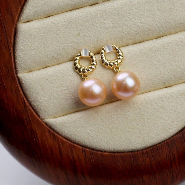 珍珠直播 - DSES-DS-055-359 珍珠麻花 鏤空款耳環 【橘色】