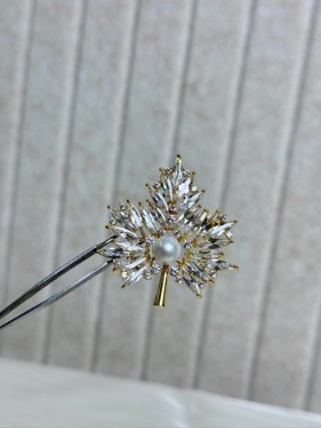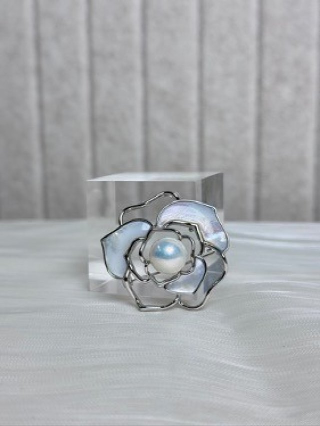 珍珠直播-B-008-299 淡水貝母山茶花胸針