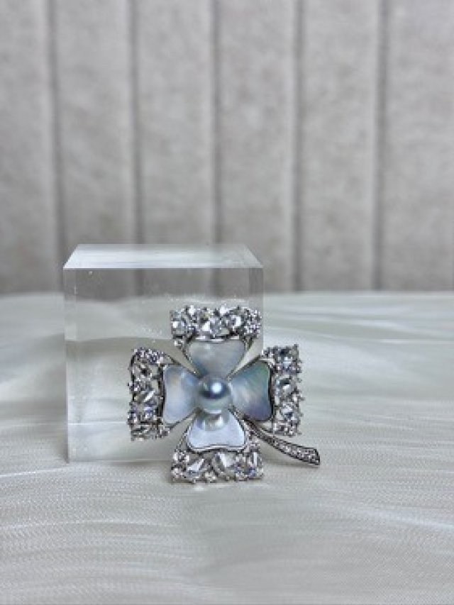 珍珠直播-B-001-299 海水真多麻四葉草胸針