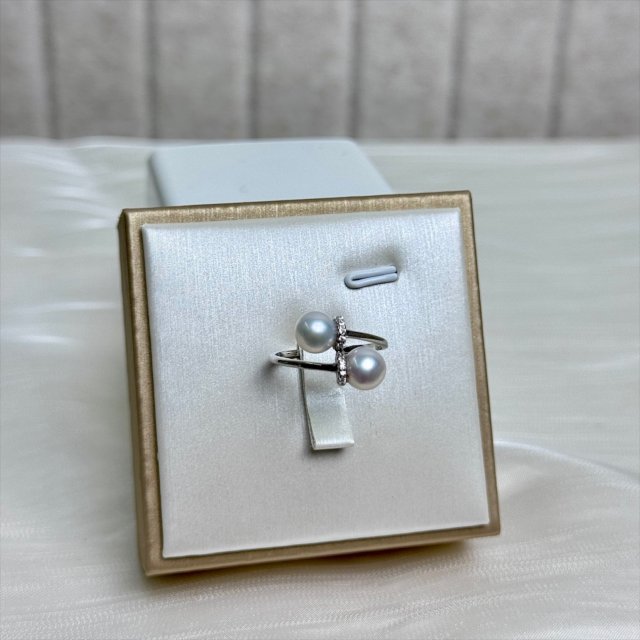 珍珠直播 - B-018-299 雙珍珠水鑽開口戒