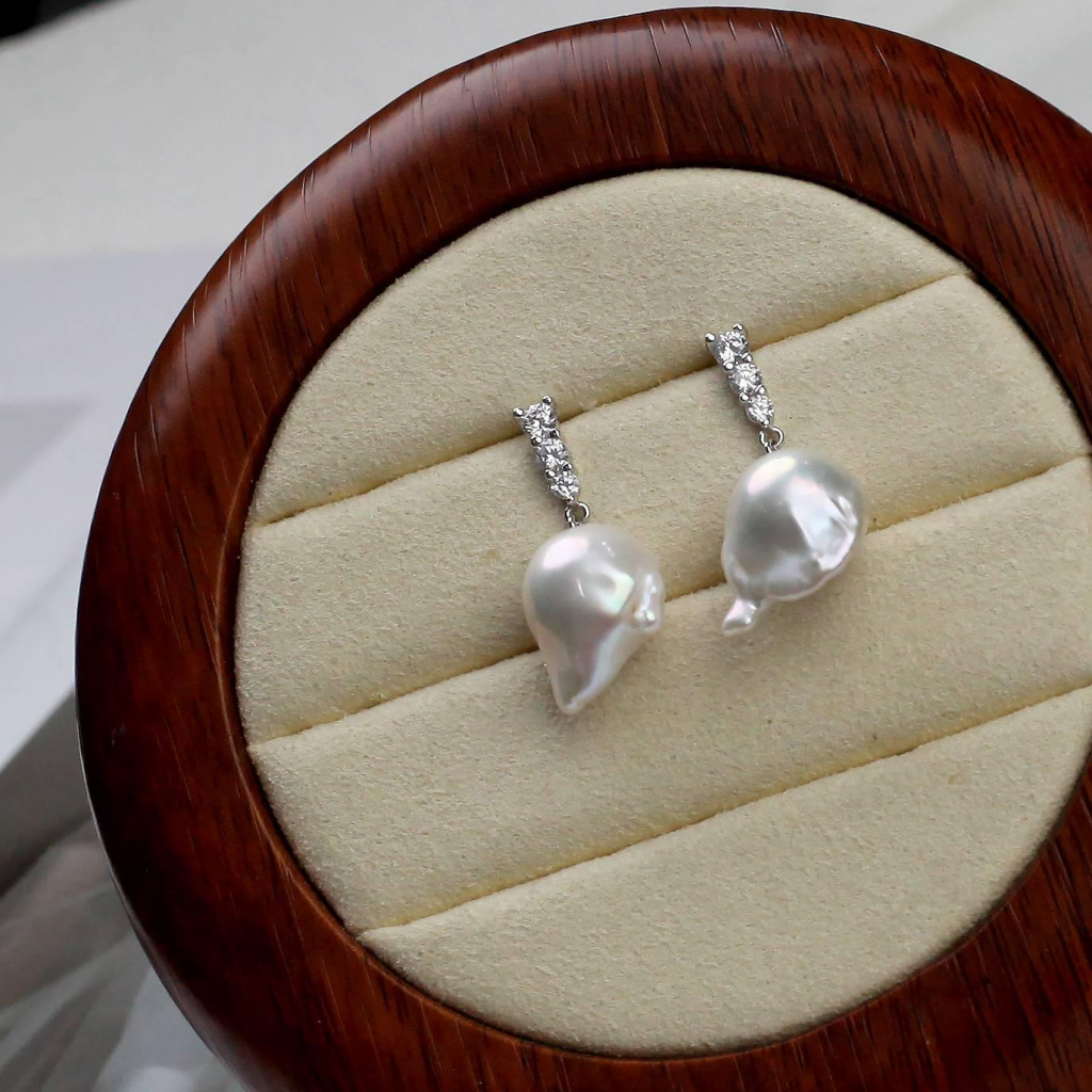 珍珠直播 - DSES-DS-051-299 淡水巴洛克三鑽耳環