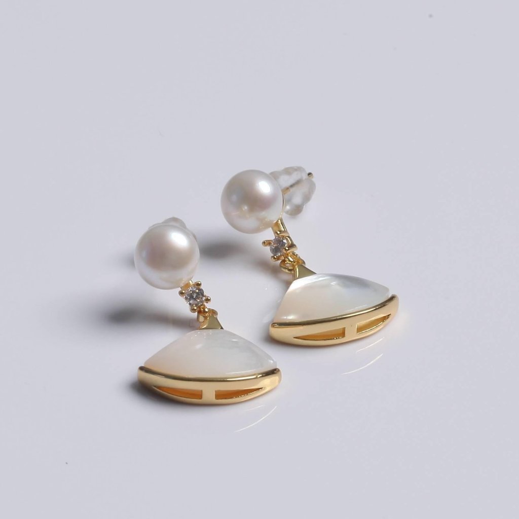 主頁 珍珠直播 - DSES-DS-170-59 貝母小閃裙珍珠耳環